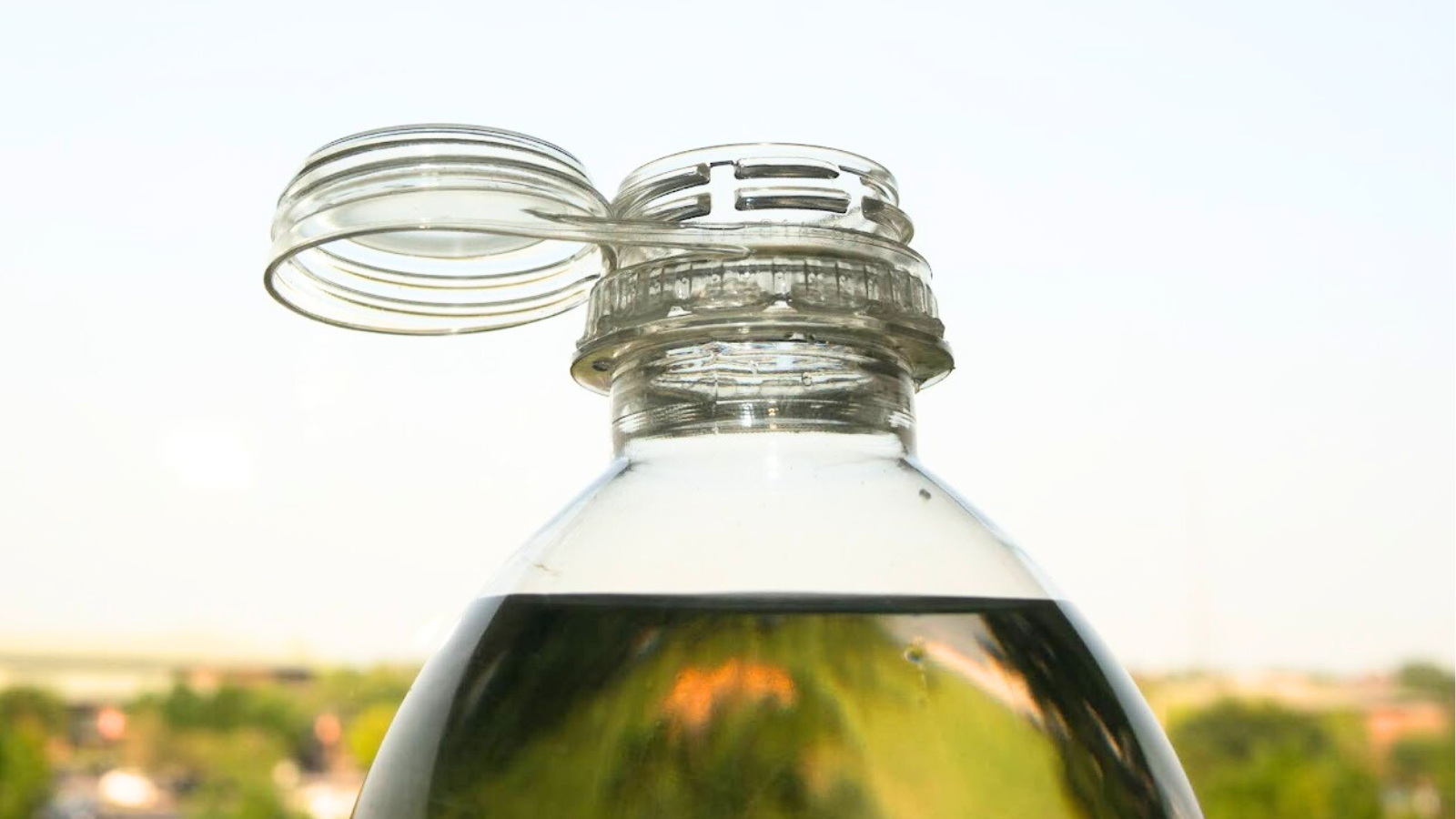 Mono-material solution improves recycling circularity. Better recycling without the need to separate cap from container. Enables expanded use of recycled PET.